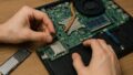 交換手順としては、底面のネジを外し、プラスチックのヘラなどで慎重にカバーを開け、バッテリーのコネクタを抜いてからSSDを差し替える形になります。