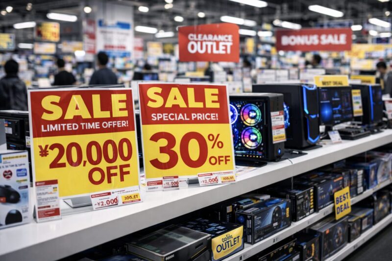 学生や新社会人向けに、ポイント還元率が大幅にアップしたり、周辺機器がセットになったりします。 - 夏・冬のボーナスセール: