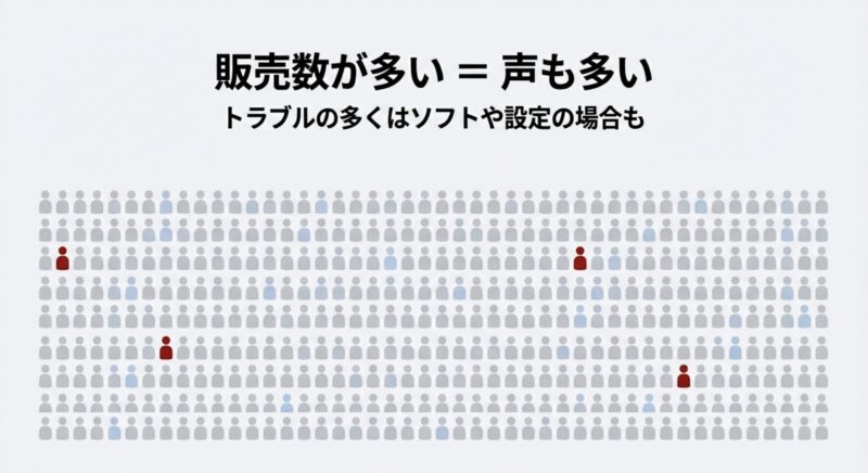 - 販売台数が多いぶん、不具合報告の絶対数も増えやすい