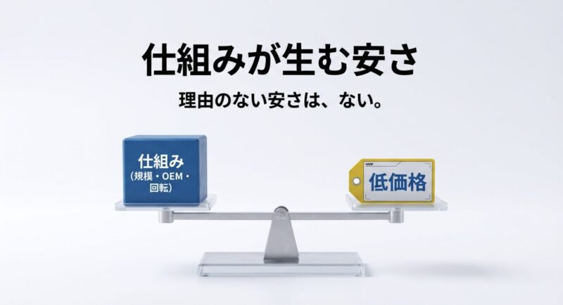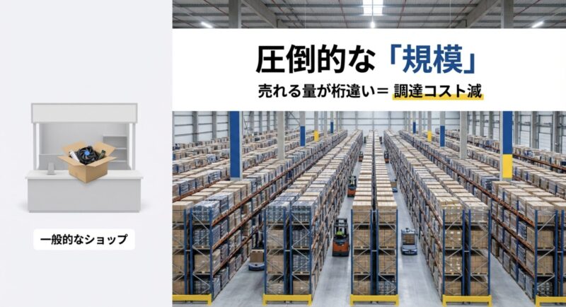 ここ、見落とされがちなんですが、規模のメリットはパーツの仕入れだけじゃなくて、物流・検品・組み立ての作業設計にも効いてきます。
