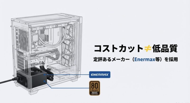 でも結論から言うと、最近のドスパラは電源で雑なコストカットをしている印象は薄いです。