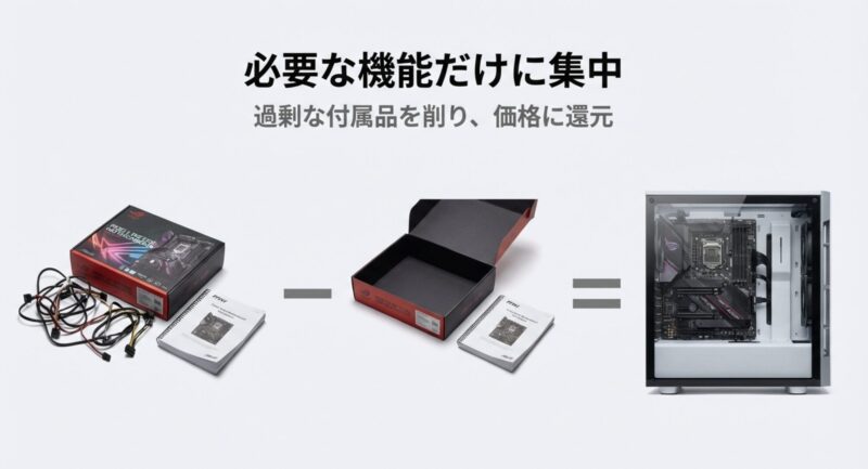 BTO向けはパッケージや付属品を簡素化してコストを抑えることが多く、中身の品質を落とさずに“売り方”で調整するのは合理的です。