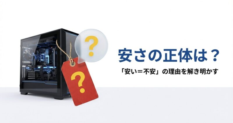 CPUとGPUだけで比較すると安く見えるけど、メモリが少なかったり、SSDがQLCだったり、電源容量がギリギリだったりすると、あとで「思ってたのと違う…」になりやすい。