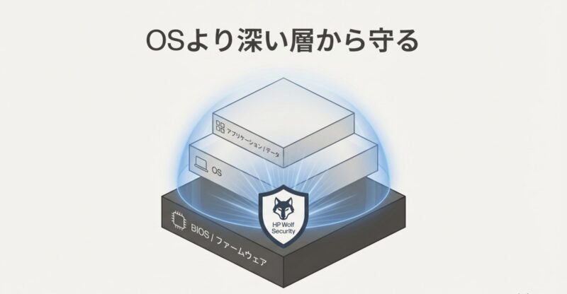 ポイントは、単体のウイルス対策だけじゃなく、BIOS保護や隔離実行など、層で守る発想です。