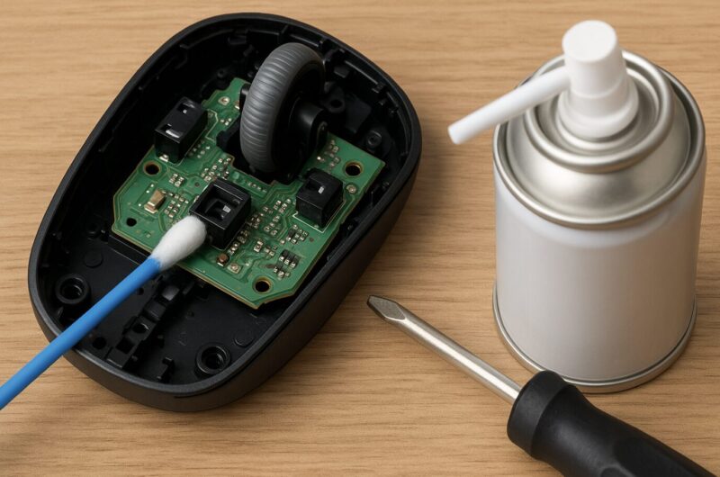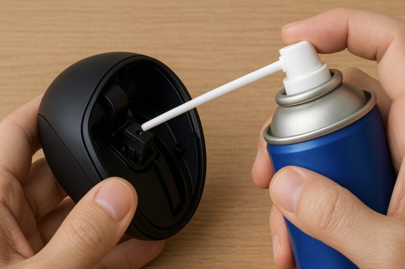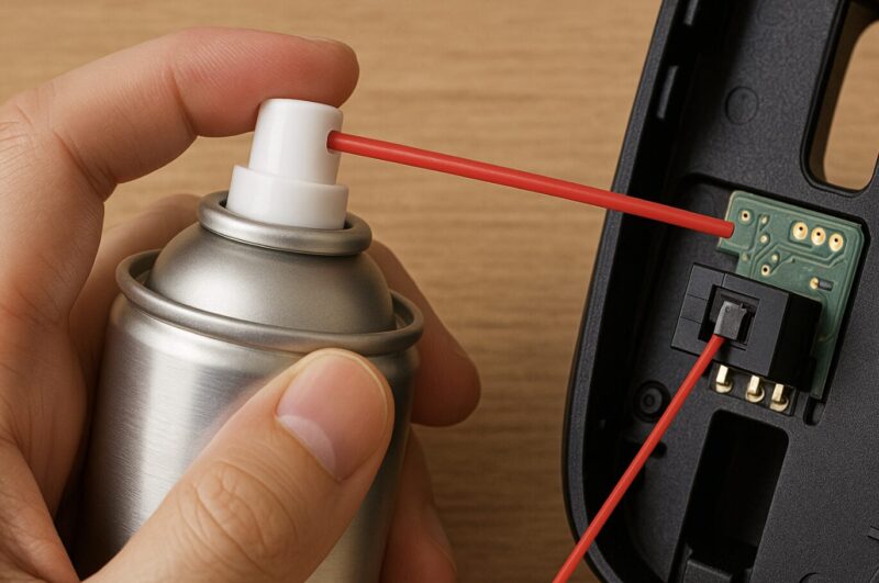 分解ついでに、エアダスターで基板全体のホコリを飛ばし、柔らかいブラシで清掃してあげることは、マウスの寿命を延ばす上で非常に有効です。