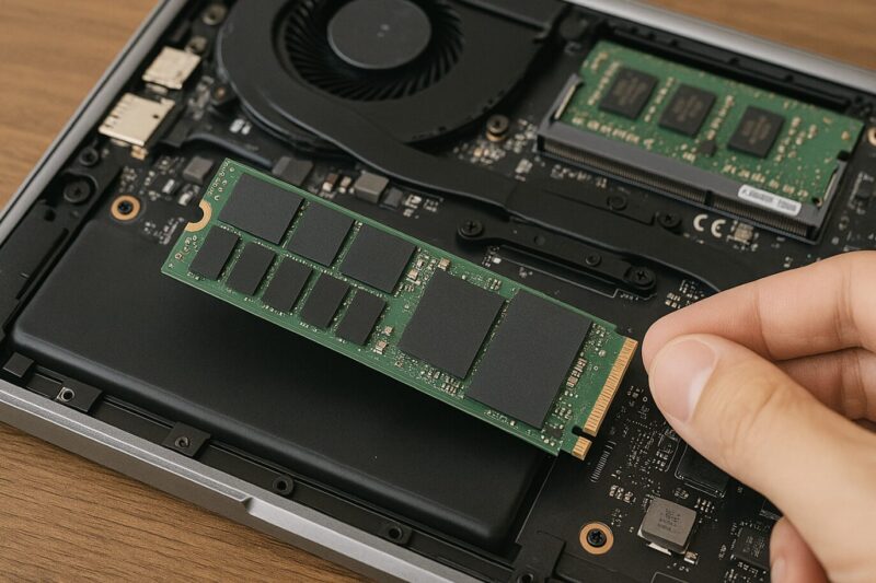 メモリ(RAM)は増やせませんが、データ保存場所であるストレージ(SSD)は交換可能です。