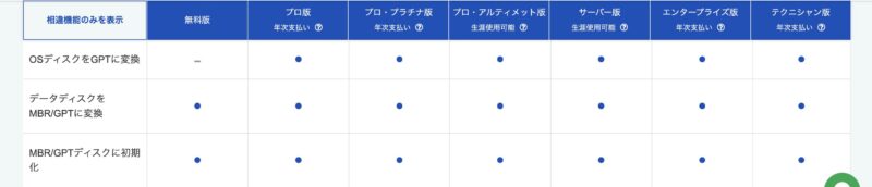 そのため、MiniTool Partition Wizardでは、この「データを失わずに変換する機能」を有料のPro版の機能として提供しています。