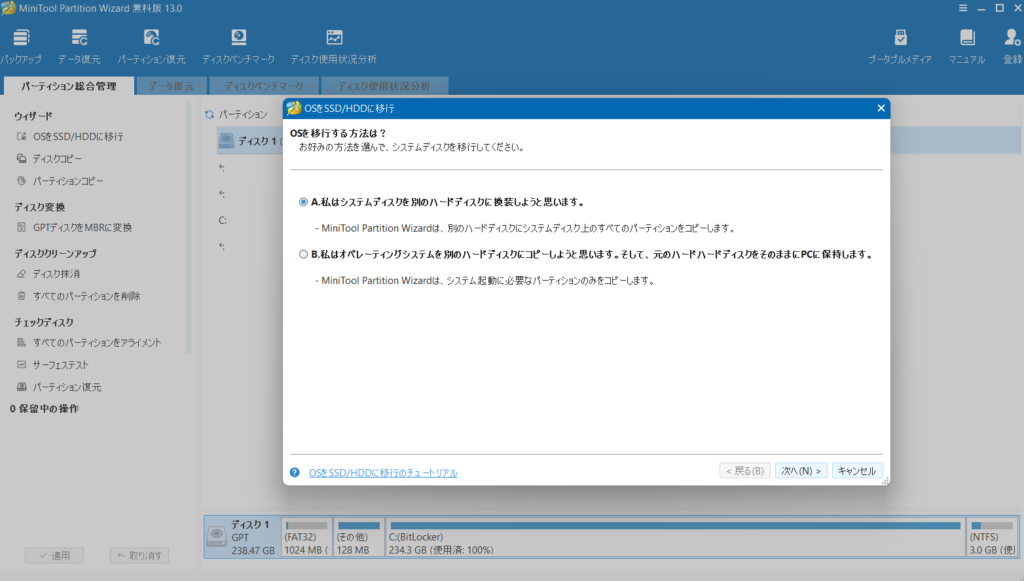 MiniTool Partition Wizardは、パーティションソフトウェアとして非常に有名ですが、無料版でOS移行ができない、クローンがグレーアウトするといった声も確かによく聞きます。