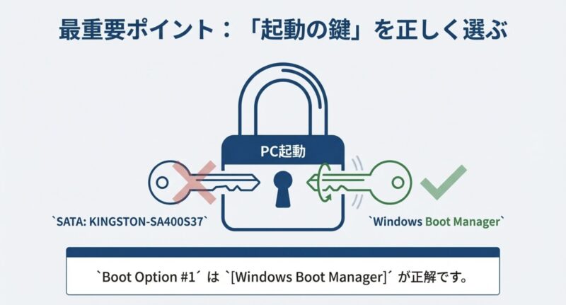 - Boot Option #1の設定(Windows Boot Managerがあるか)