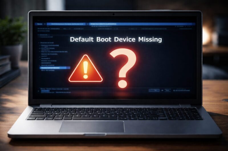 Default Boot Device Missingは「既定の起動デバイスがない(見つからない)」というニュアンスで、原因の方向性は起動先が見つからない系に寄ります。