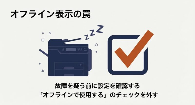 オフライン表示は、プリンタ本体が壊れたとは限りません。