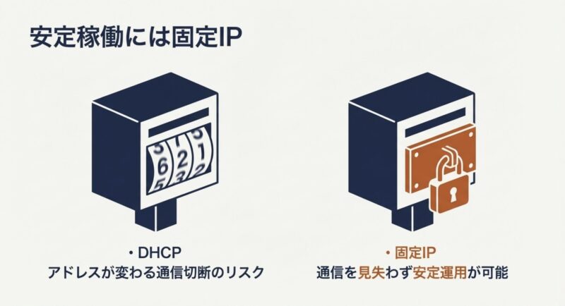 私は、業務で固定運用するプリンタなら、できるだけ固定IPで管理するほうが安定しやすいと考えています。
