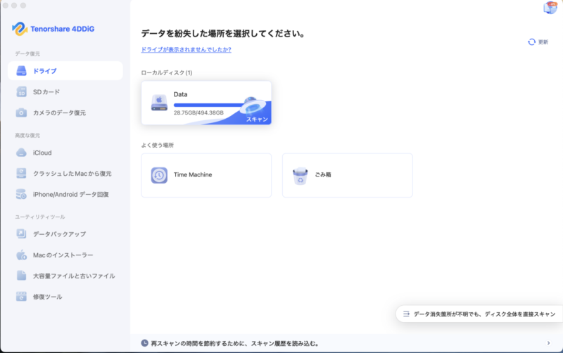 Tenorshare 4DDiG Macは、Mac専用に開発された高性能なデータ復元ソフトウェアです。