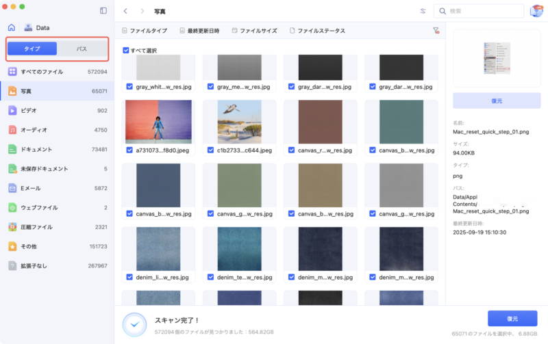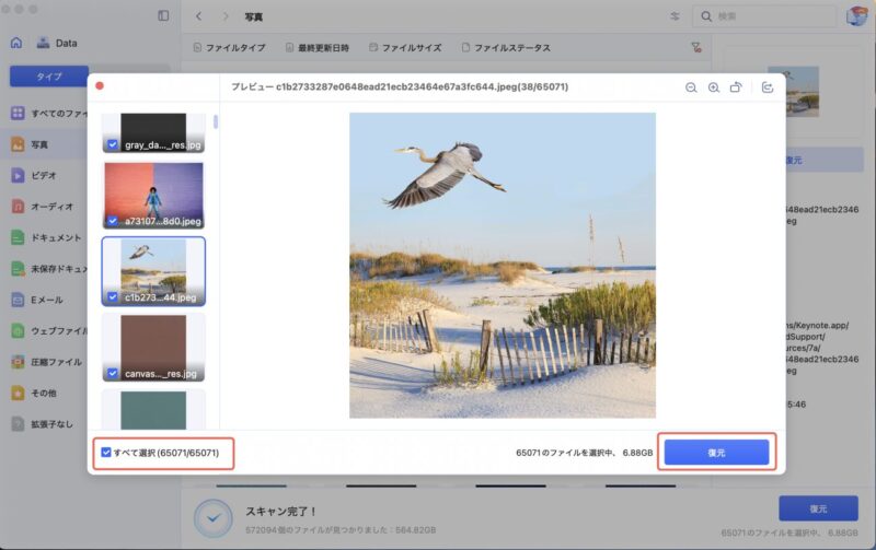 写真や動画、テキストファイルは復元前に内容を確認できます。