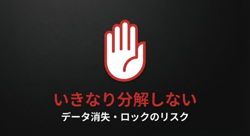 データ消失や復旧不能につながる可能性があります。最終的な判断は専門家にご相談ください。