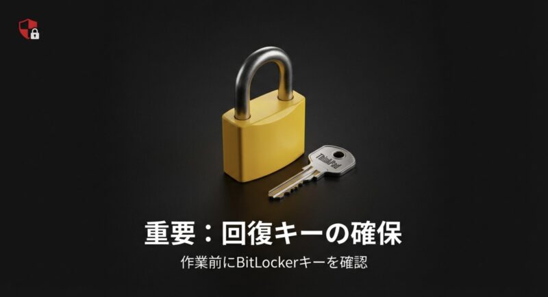 - BitLocker回復キーを必ず確保