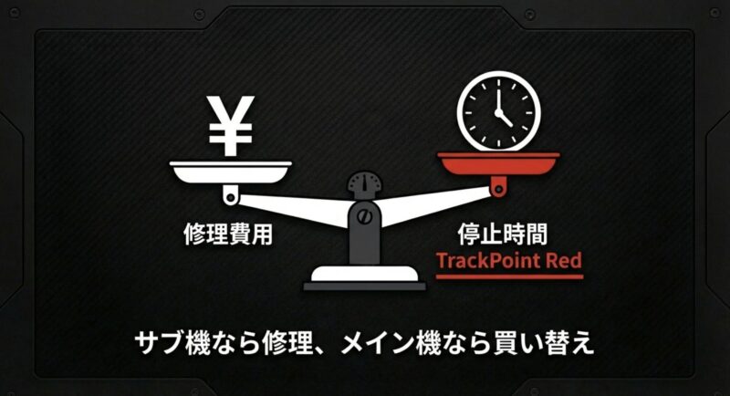 修理に出して1〜2週間止まるなら、代替機の手配やデータ移行の手間もコストになります。