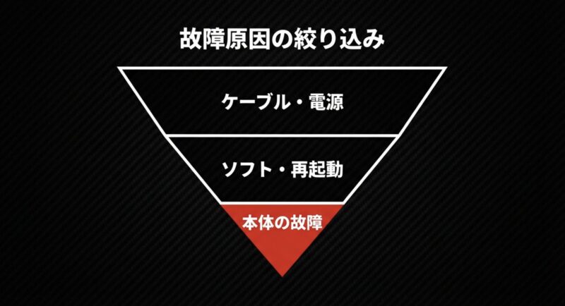 私がいつもおすすめするのは、疑う順番を固定することです。